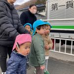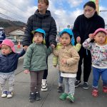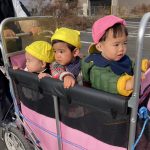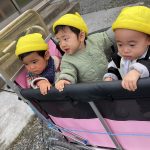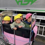 歩きとお散歩カーに乗り、0歳児さんはお散歩カーで