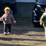 帰り道、保育園裏の空き地で少しだけ遊びました!!