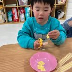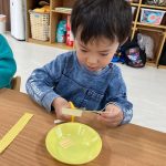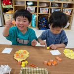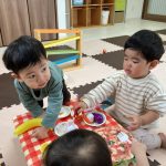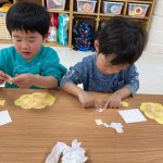 1・2歳児さんは製作、0歳児さんは好きな玩具で
