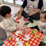 ボール転がしをしたり、おままごとを楽しむ姿が
