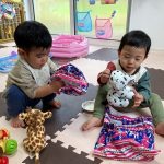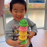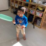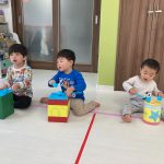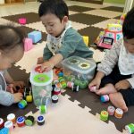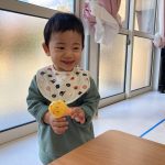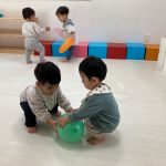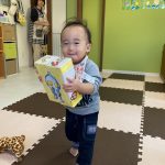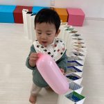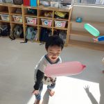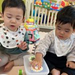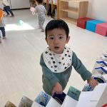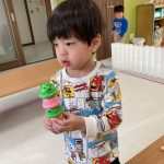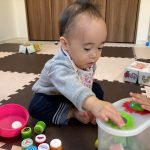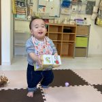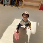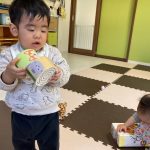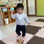 見つけて拾い、2歳児さんのお友達は