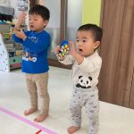 今日は0・1・2歳児さんみんなで戸外遊びを