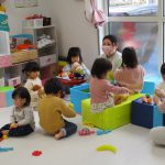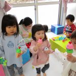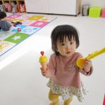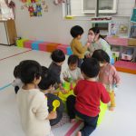今日は0歳児さんの大きいお友達は戸外遊び、