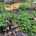 フェンスの上の方から砂を下ろして隙間に乗せたり、