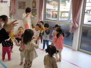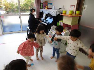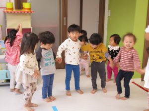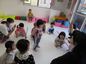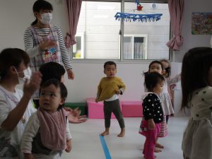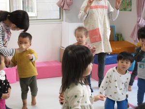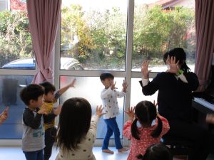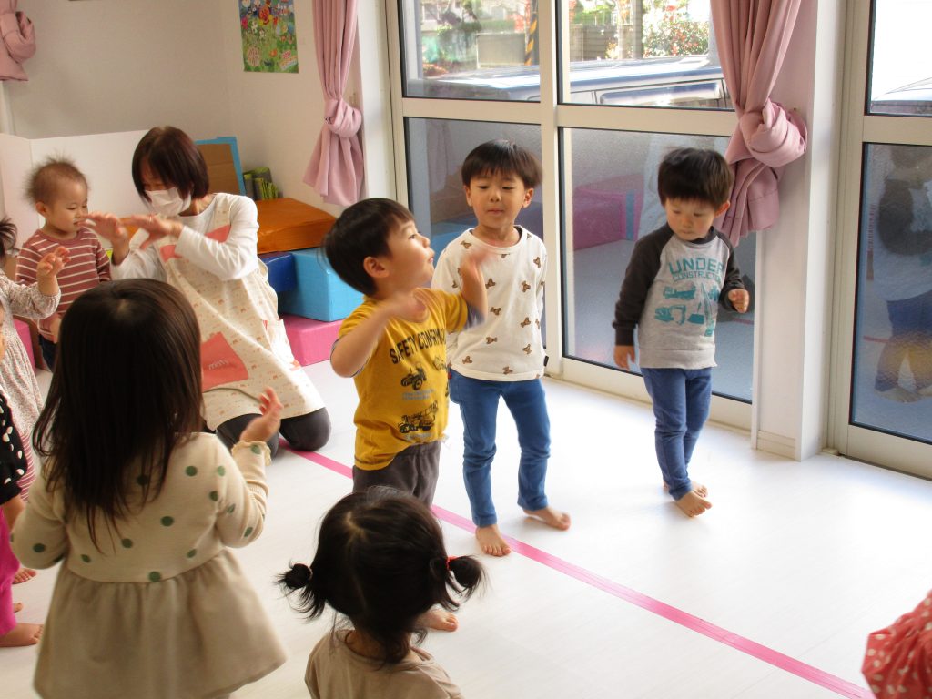 リトミックの先生の声掛けに合わせて