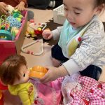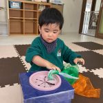 0歳児さんはお人形さん遊びや洗濯ごっこをして