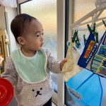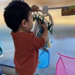 お洗濯ごっこでは乾いたハンカチを洗濯バサミで