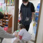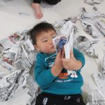 1・2歳児さんは新聞紙遊び、0歳児さんは玩具