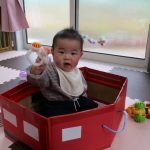 月齢の小さいお友達はダンボールの車に入って