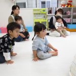 0歳児さんはバンボベビーソファーにお座りをして