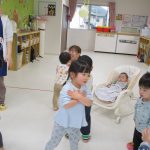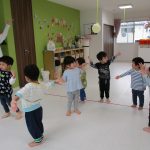 2歳児さんは折り紙で輪を作りました!!