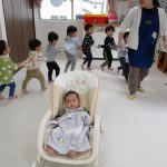 0歳児さんはバンボベビーソファーにお座りをして