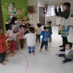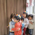 はじめは戸外遊びの予定で園庭に出たのですが、