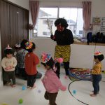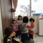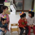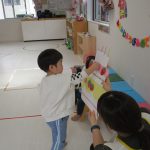 はじめは戸外遊びの予定で園庭に出たのですが、